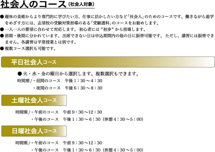 愛知県立芸術大学など国公立・私立の美術系大学を受験する人の為のコースです。