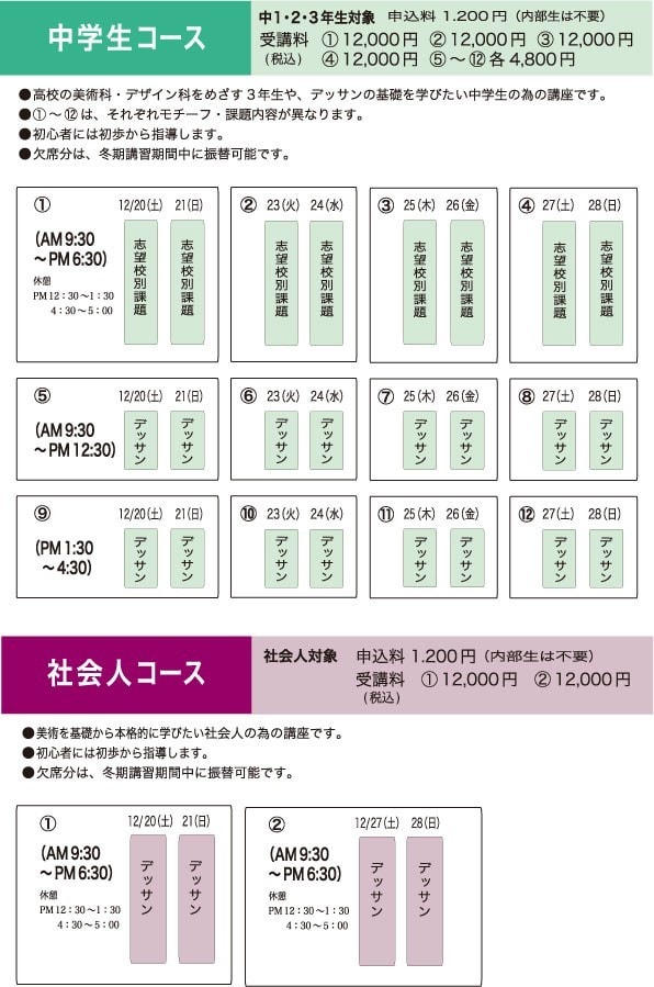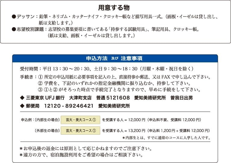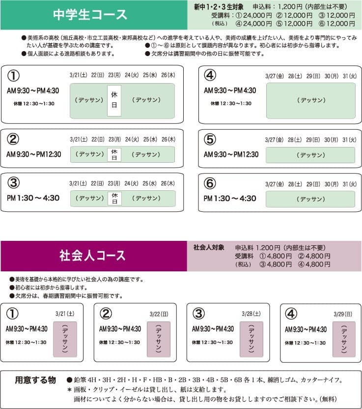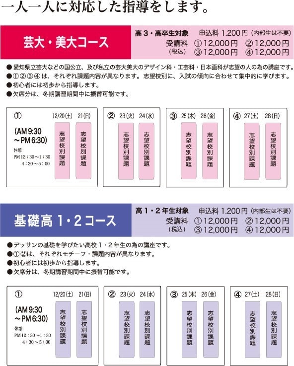 愛知県立芸術大学など国公立・私立の美術系大学を受験する人の為のコースです。 |